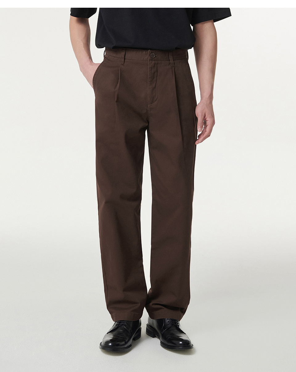 원 턱 레귤러 핏 치노 팬츠 [바로크 브라운]