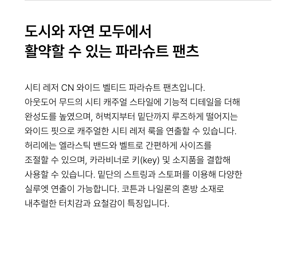 [시티 레저] CN 와이드 벨티드 파라슈트 팬츠 [블랙]