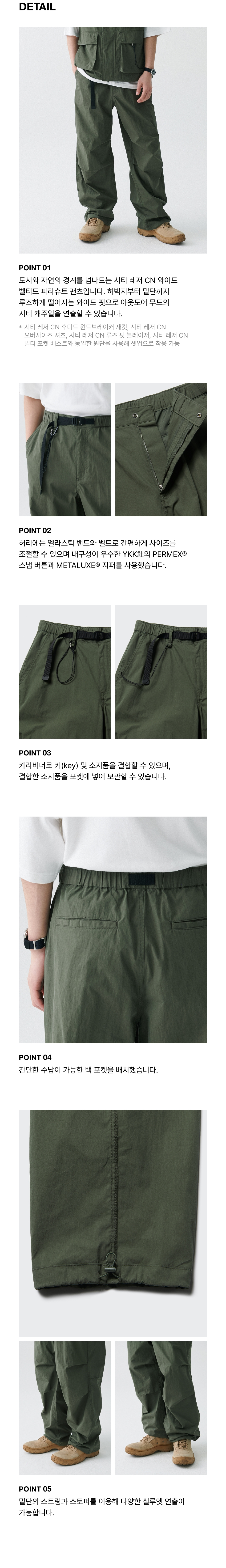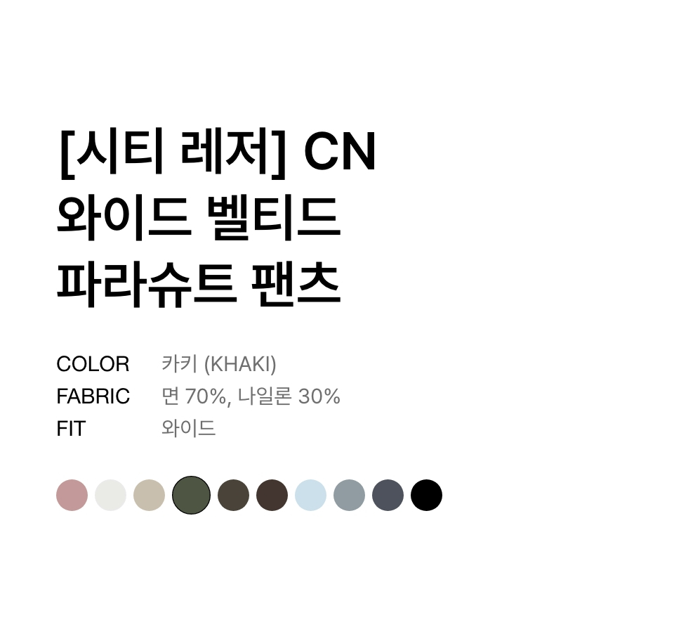 [시티 레저] CN 와이드 벨티드 파라슈트 팬츠 [카키]