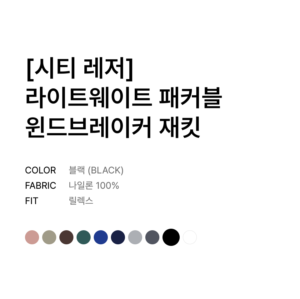 [시티 레저] 라이트웨이트 패커블 윈드브레이커 재킷 [블랙]