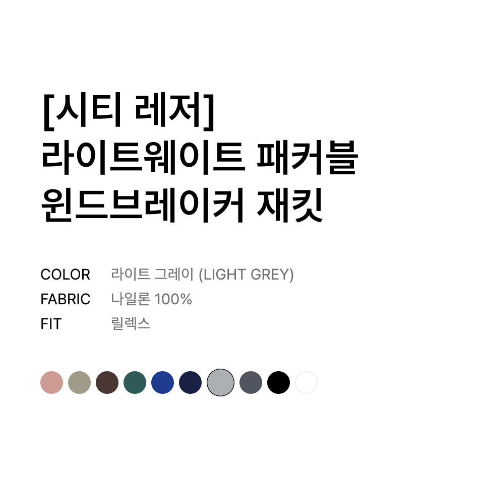 [시티 레저] 라이트웨이트 패커블 윈드브레이커 재킷 [라이트 그레이]