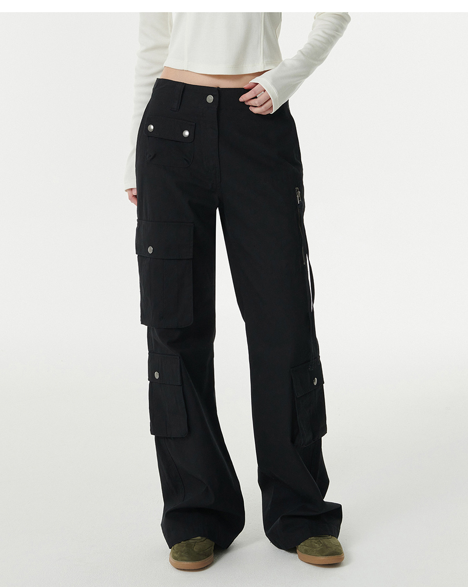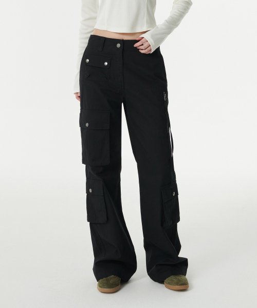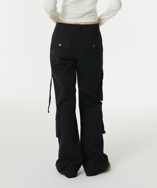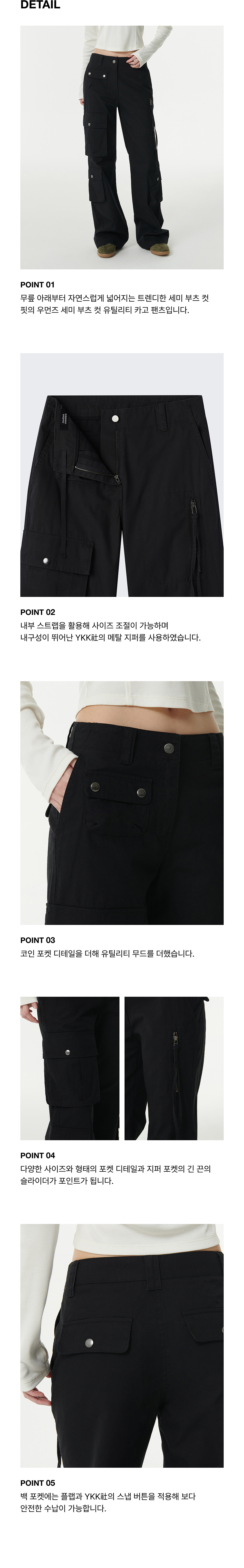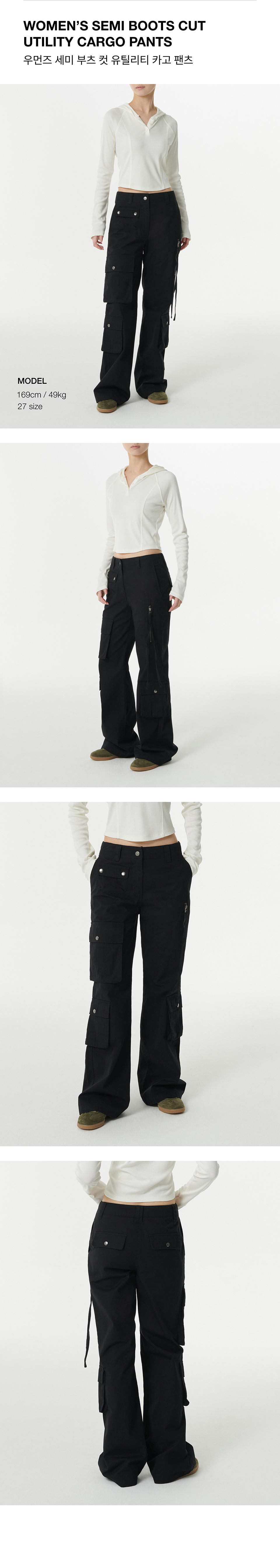 우먼즈 세미 부츠 컷 유틸리티 카고 팬츠 [블랙]