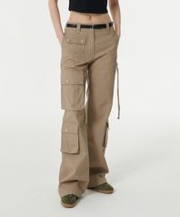 우먼즈 세미 부츠 컷 유틸리티 카고 팬츠 [베이지]