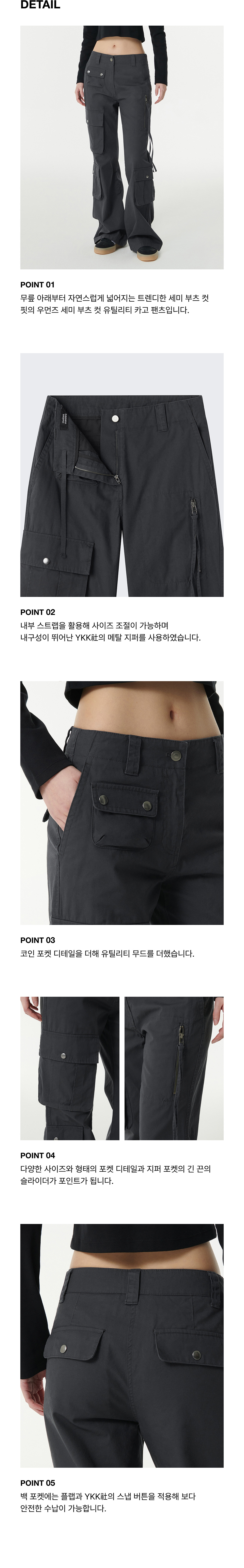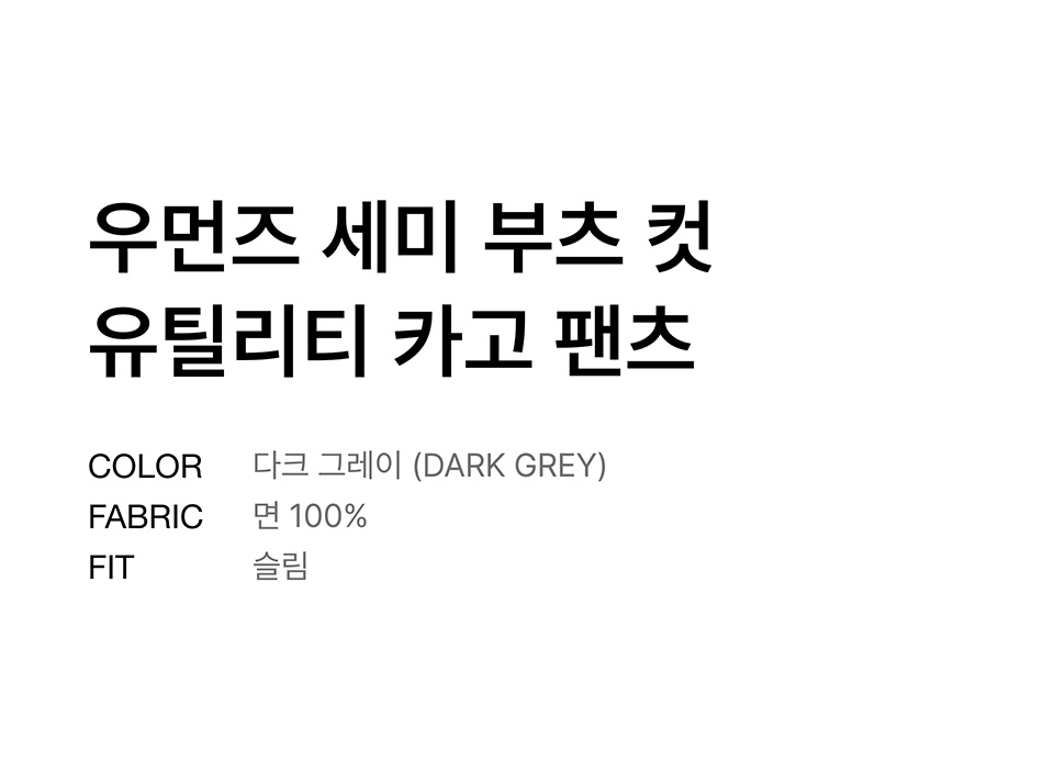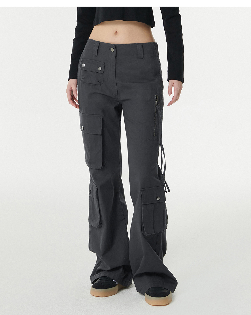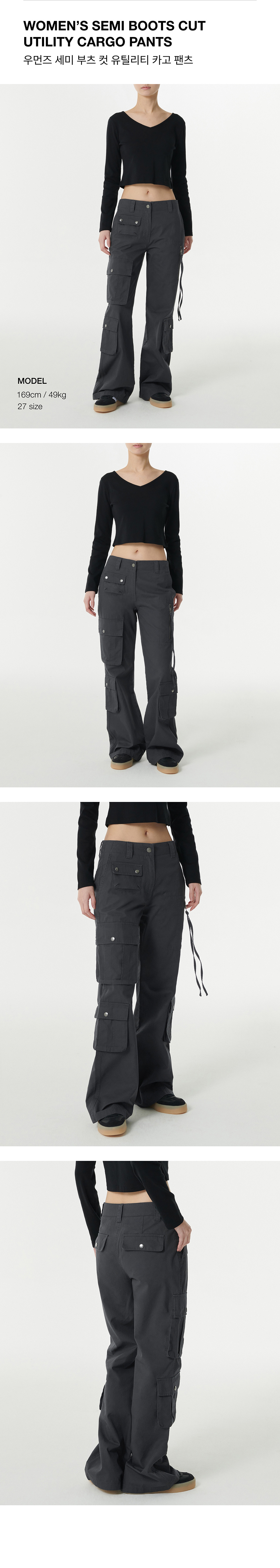 우먼즈 세미 부츠 컷 유틸리티 카고 팬츠 [다크 그레이]