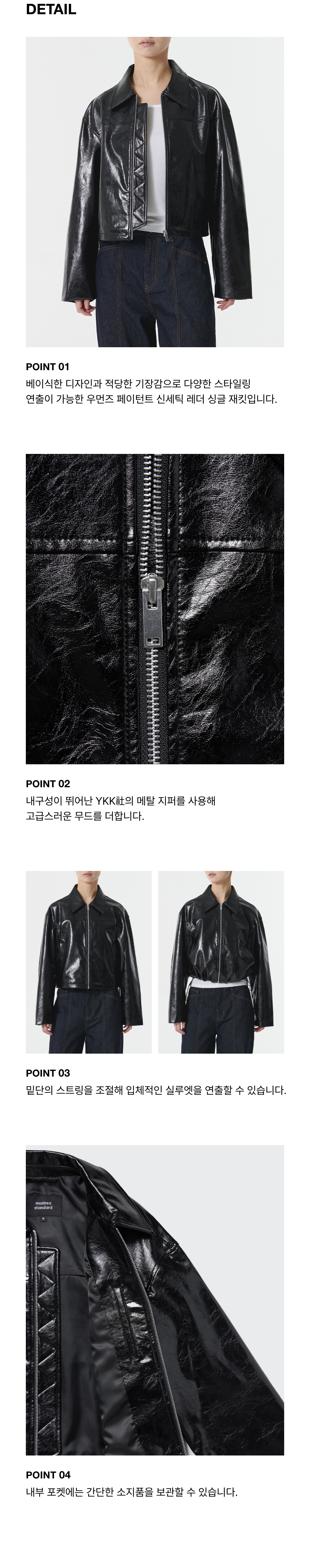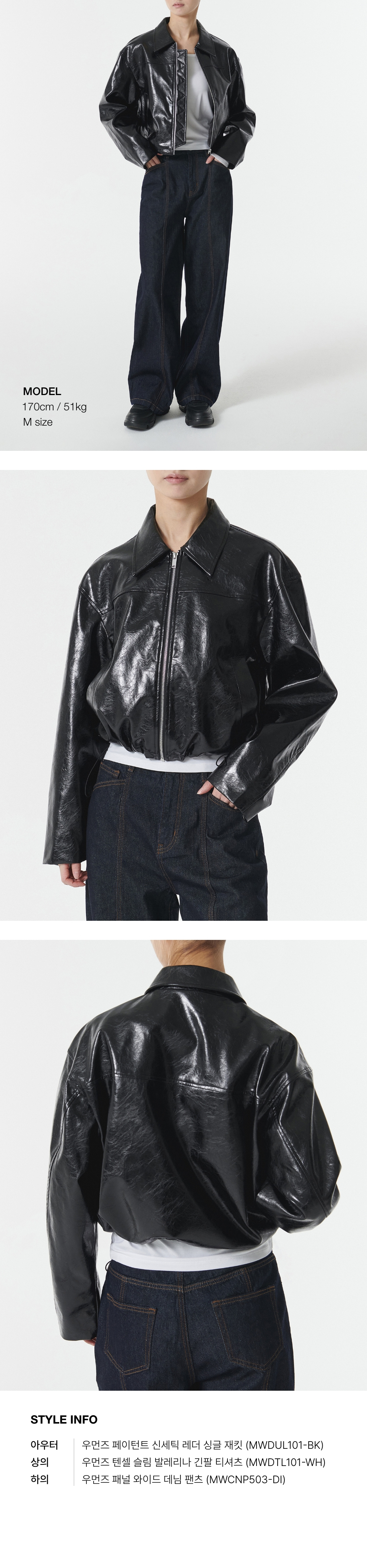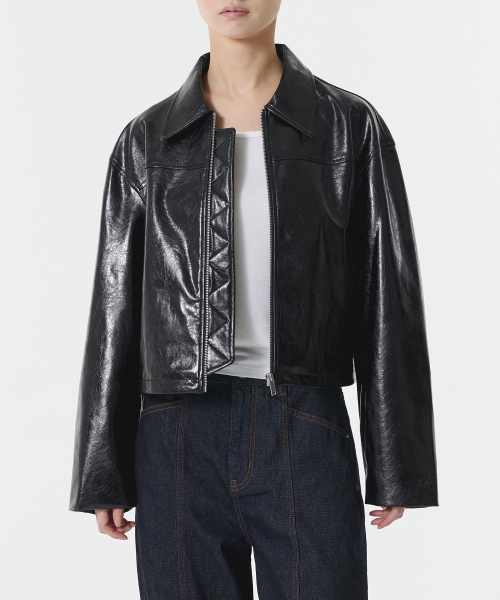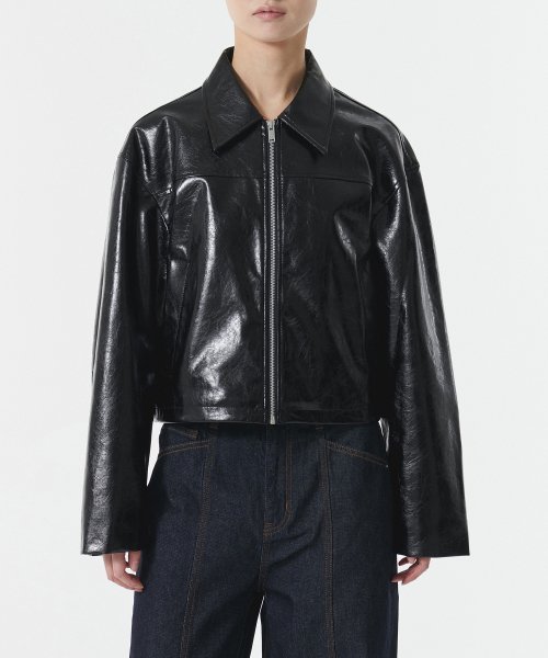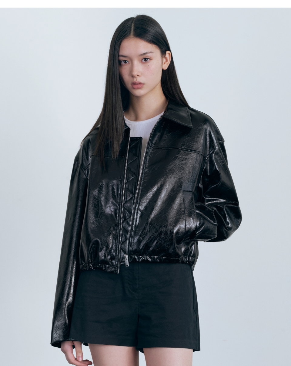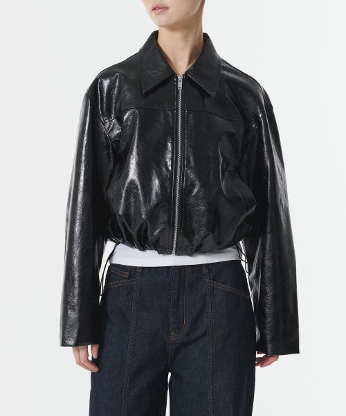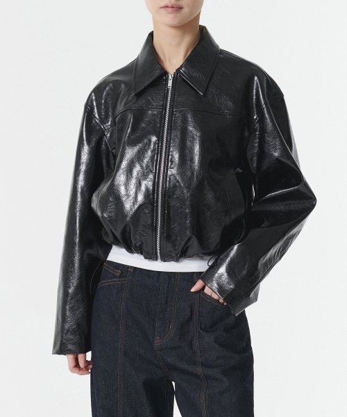 우먼즈 페이턴트 신세틱 레더 싱글 재킷 [블랙]