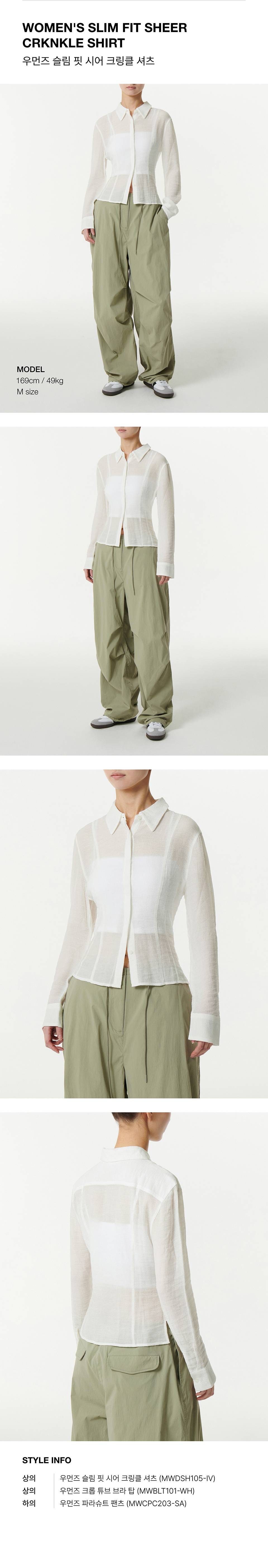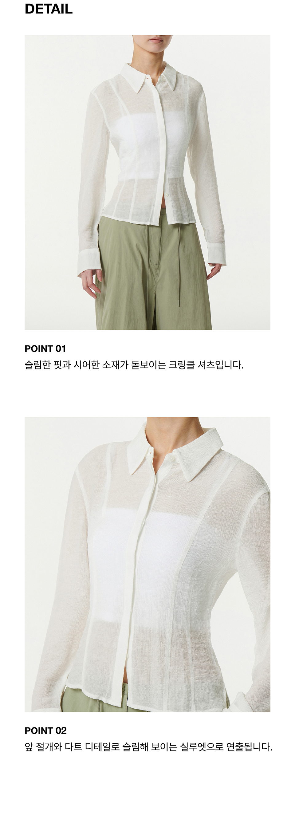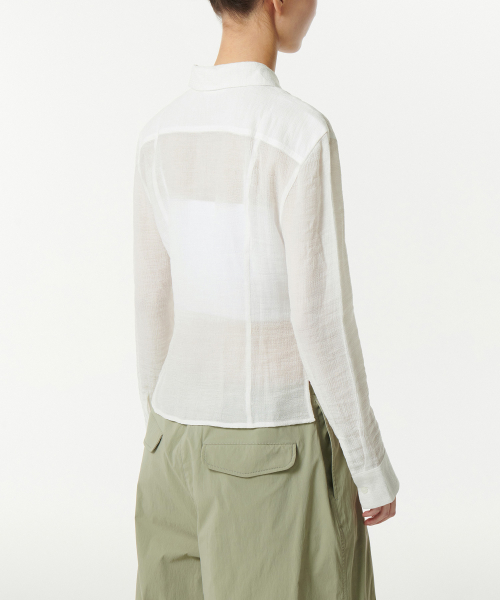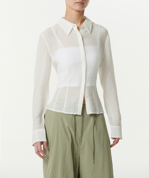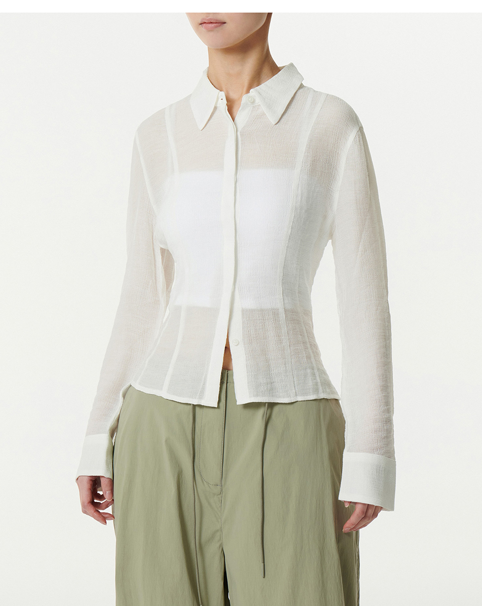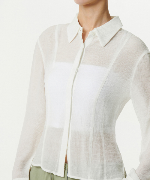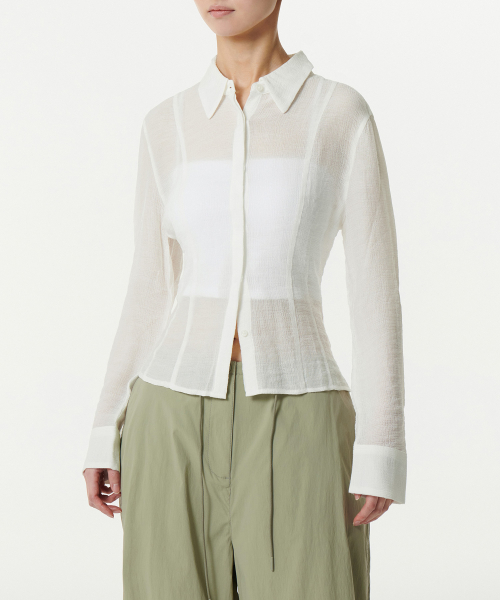 우먼즈 슬림 핏 시어 크링클 셔츠 [아이보리]