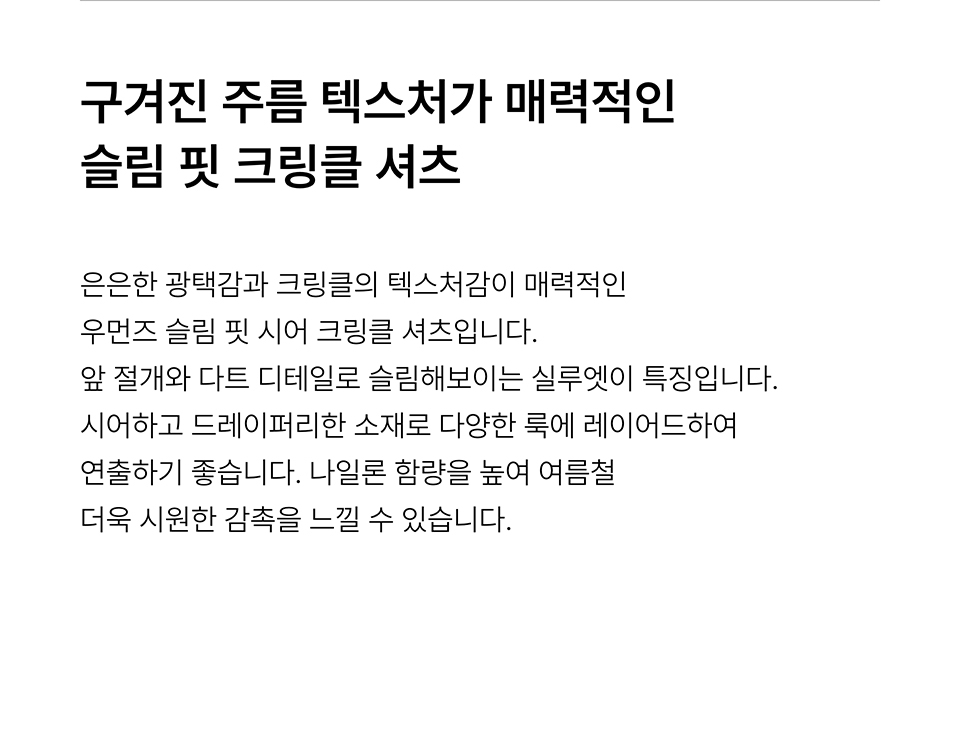 우먼즈 슬림 핏 시어 크링클 셔츠 [버터]