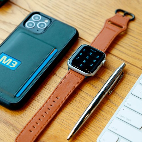 애플워치 가죽스트랩 스퀘어 버클 브라운