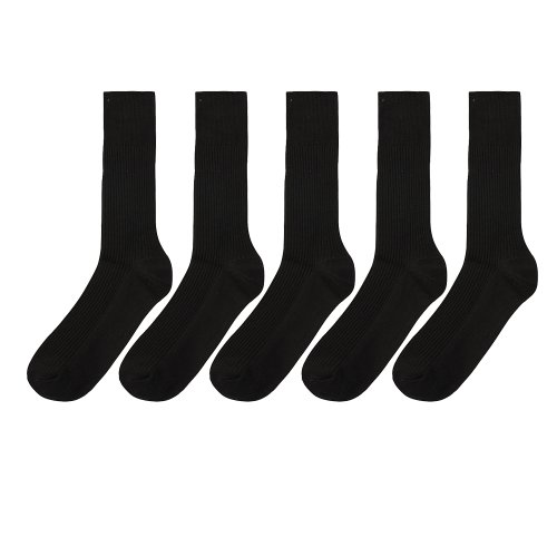 [5팩] 베이직 골지 슬림 크루 삭스 화이트/블랙