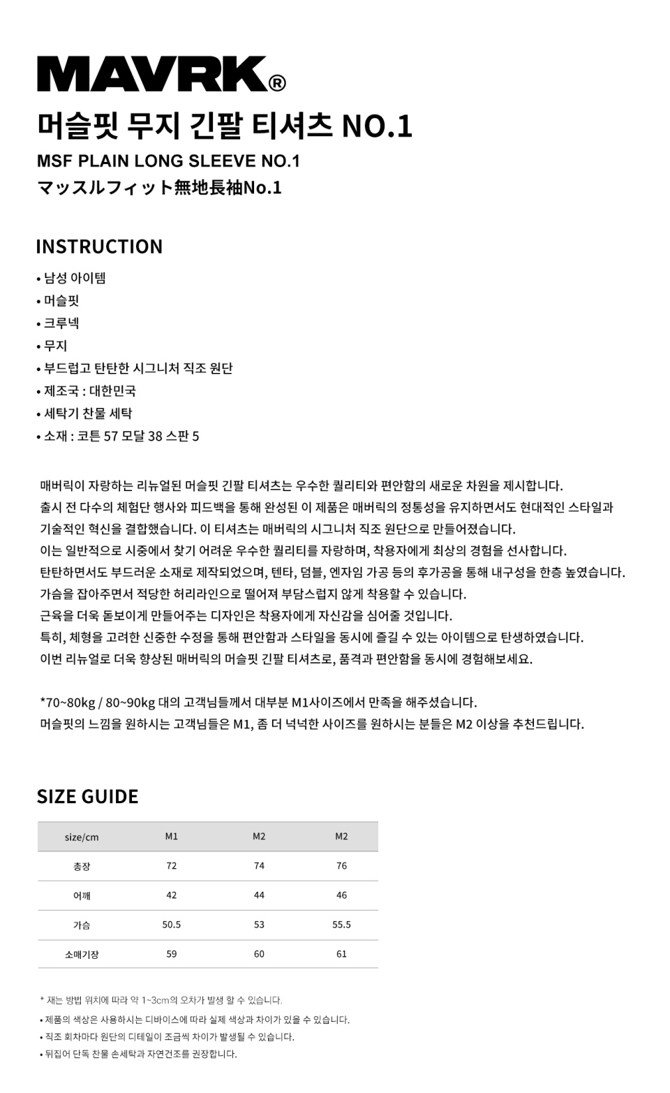 머슬핏 무지 긴팔 티셔츠 NO1 화이트