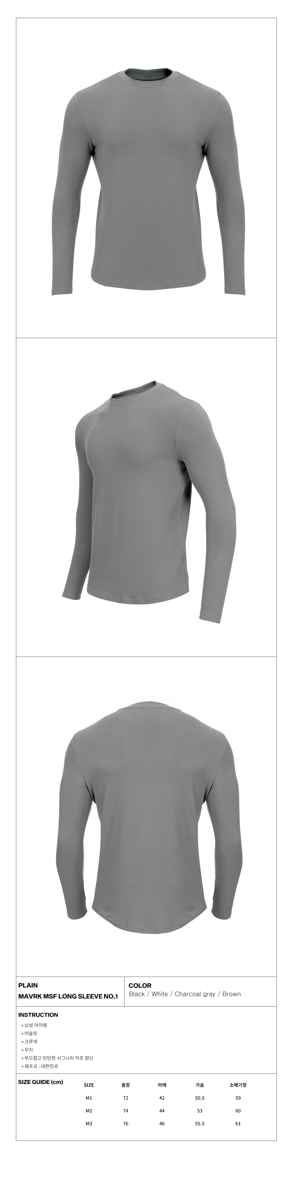머슬핏 무지 긴팔 티셔츠 NO1 차콜그레이