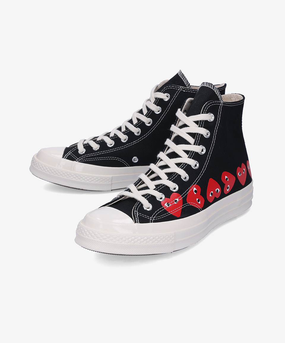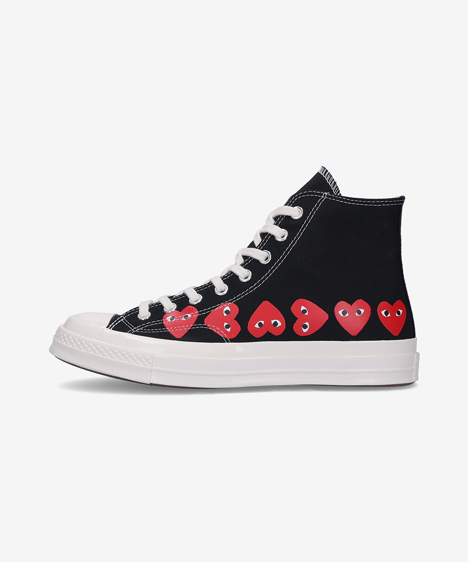 꼼데가르송 플레이 X 컨버스 척 70 멀티 하트 하이탑 스니커즈 - 블랙 / P1K1271