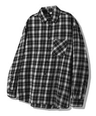 원 포켓 오버핏 플레이드 체크 셔츠 [블랙]