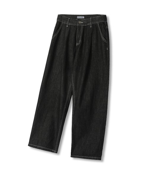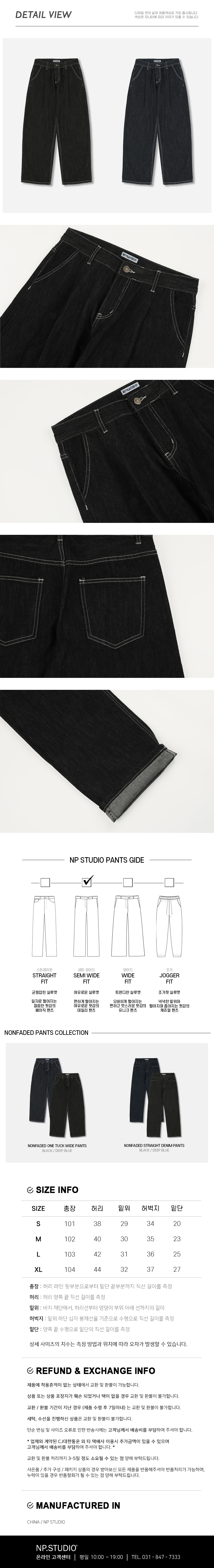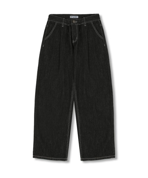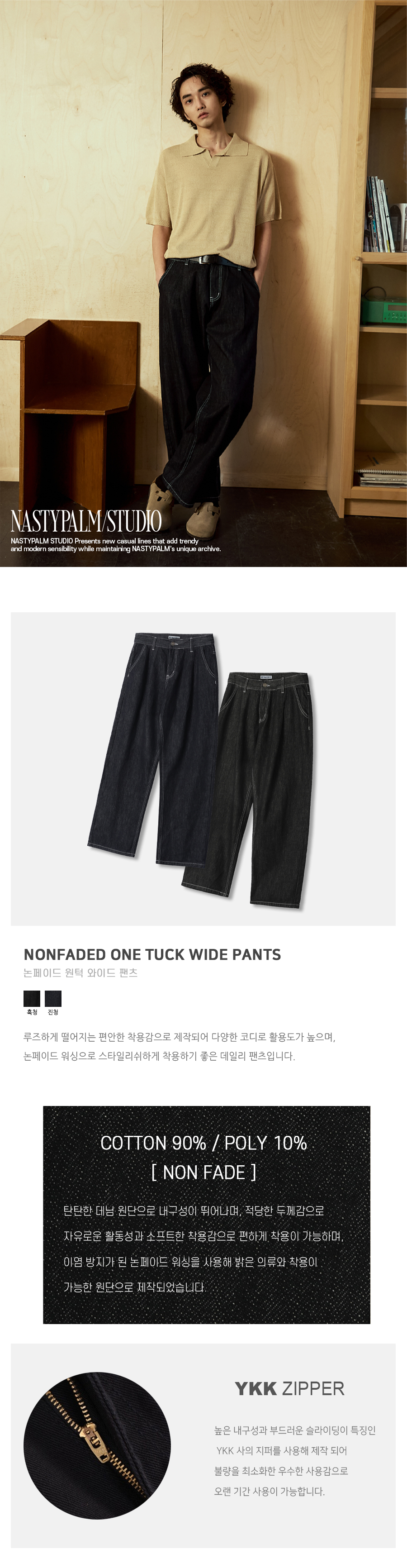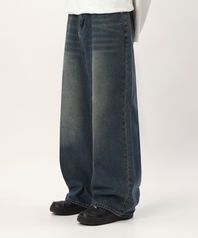 빈티지 네츄럴 워싱 와이드 데님 팬츠 흑청
