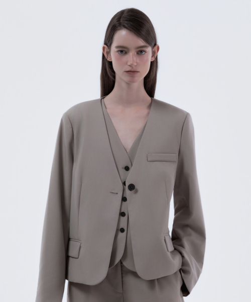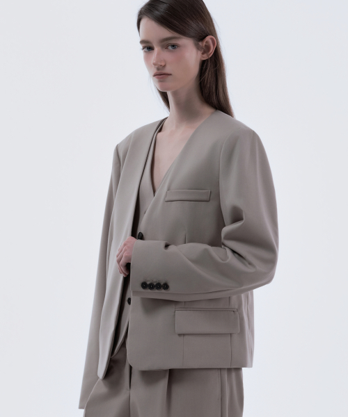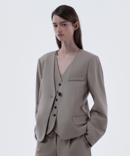 Lydia collarless suit jacket - Beige