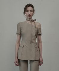 Emma String Off Shoulder Half-Sleeve Jacket - Beige