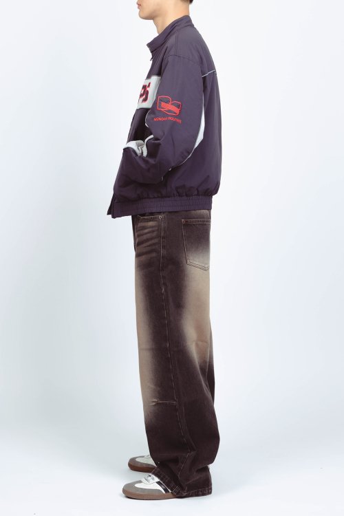 스팽글 스타 그래픽 내추럴 워시드 벌룬 와이드핏 데님 팬츠 [연청]