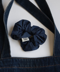 라벨 포인트 데님 스크런치