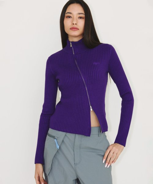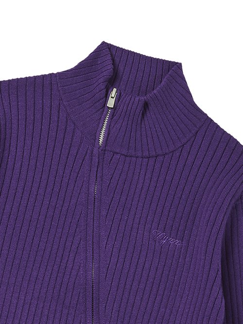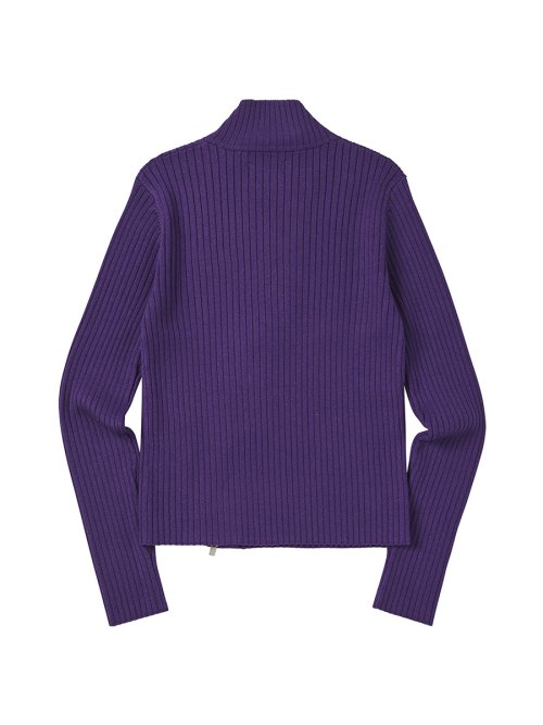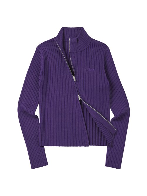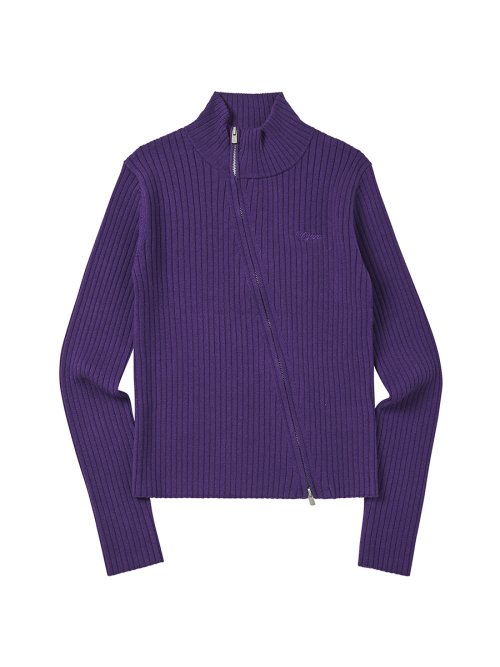 RIBBED OBLIQUE KNIT ZIP-UP PURPLE
