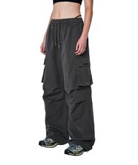 파라슈트 워싱 와이드 코튼 카고팬츠 - CHARCOAL