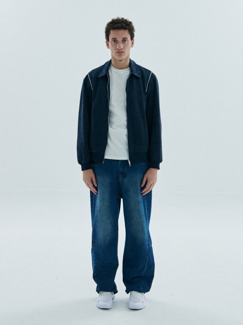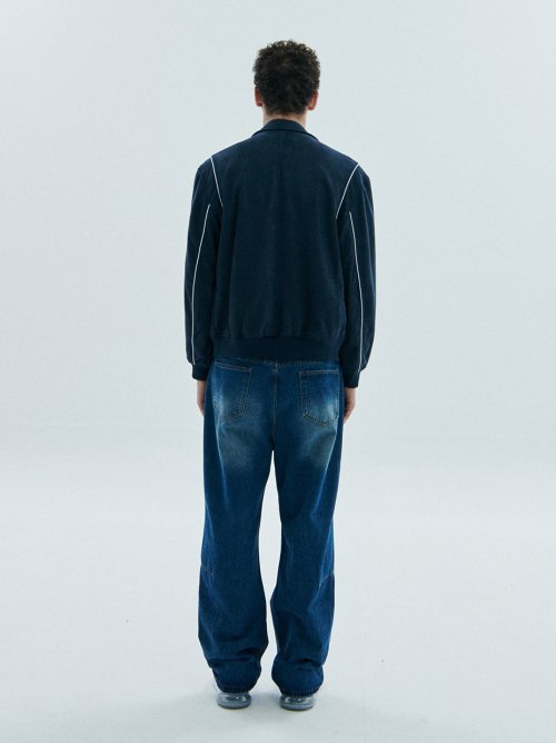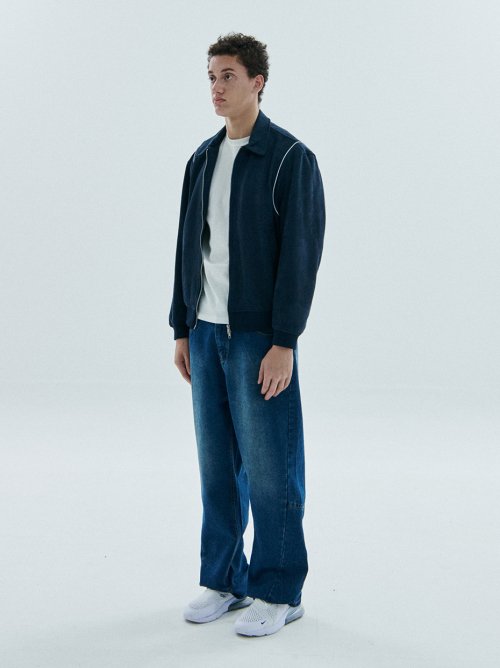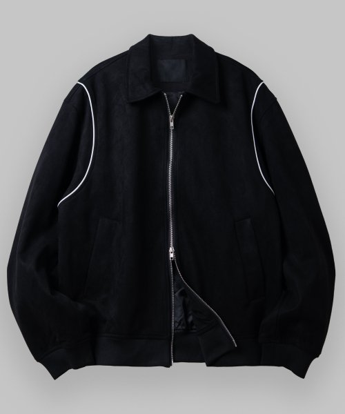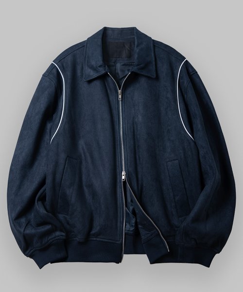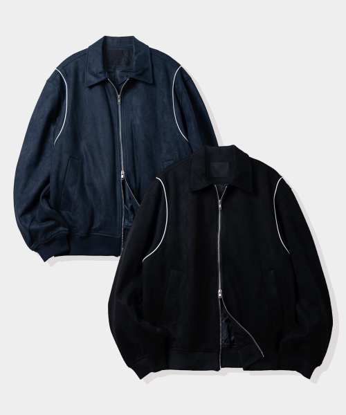 비건 스웨이드 파이핑 라인 블루종 자켓 점퍼