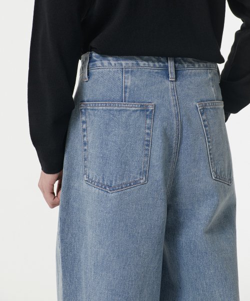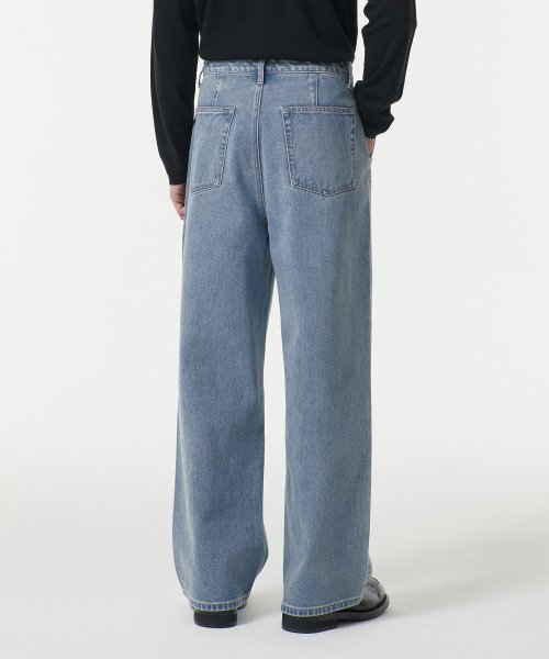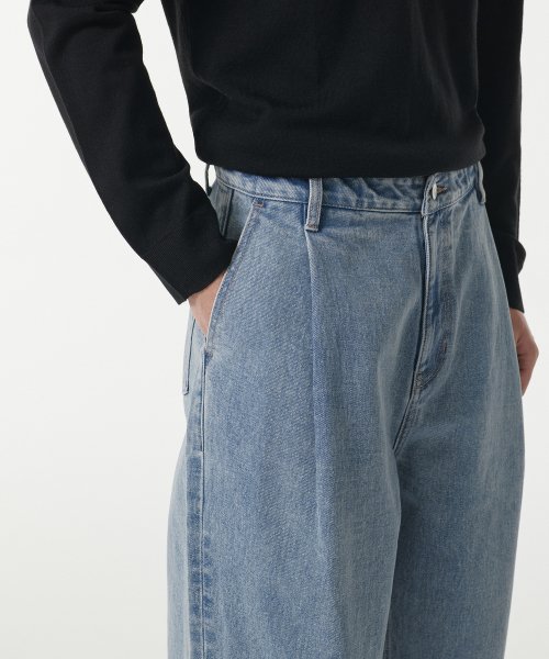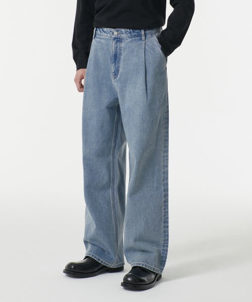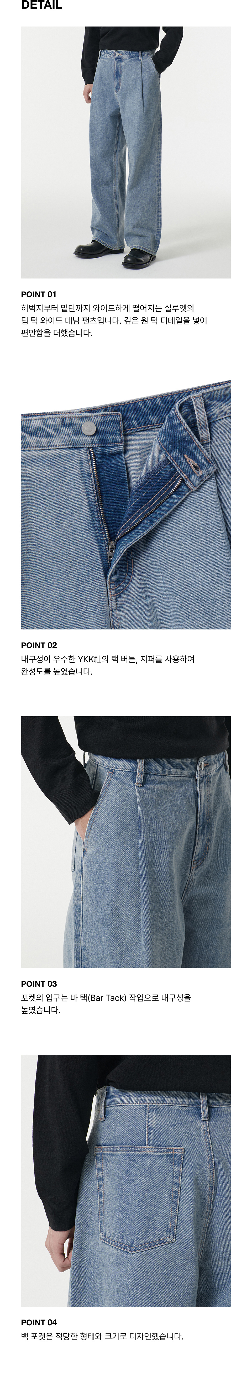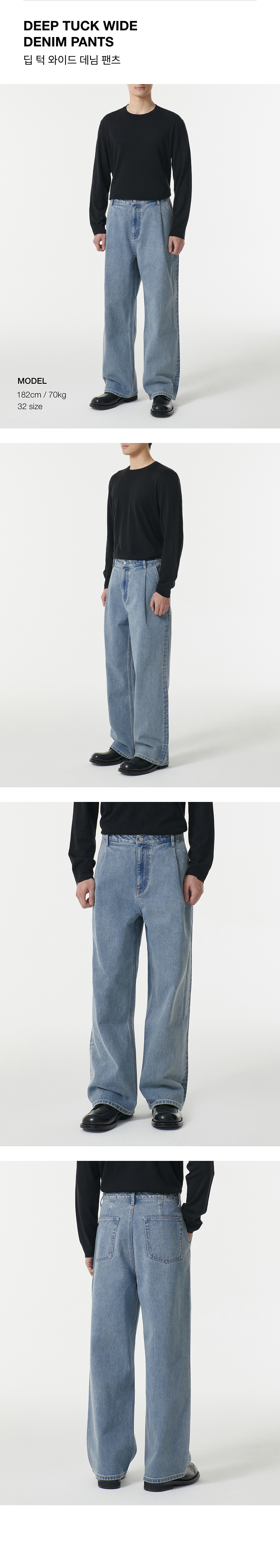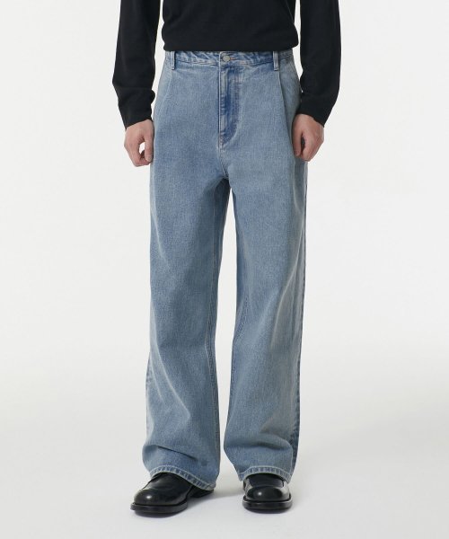 딥 턱 와이드 데님 팬츠 [라이트 인디고]
