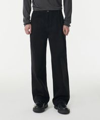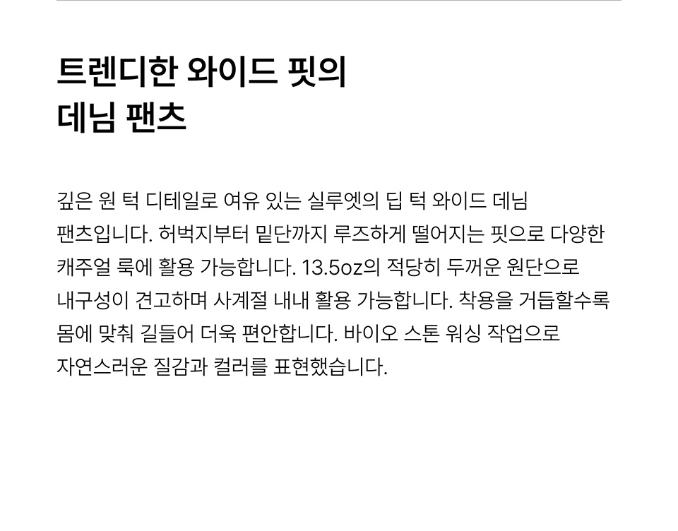 딥 턱 와이드 데님 팬츠 [로우 블랙]