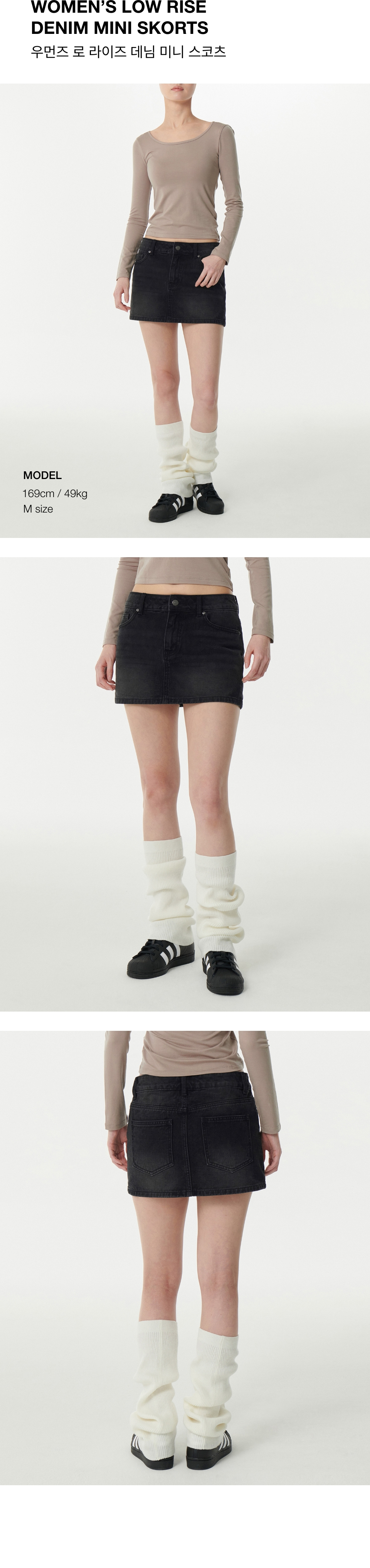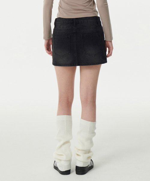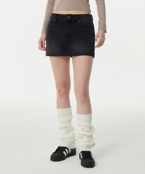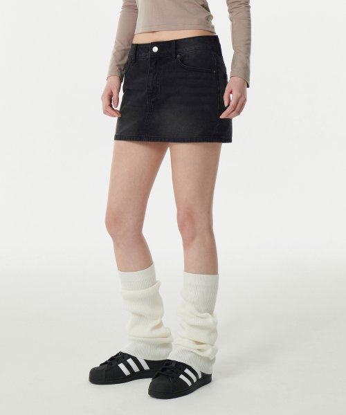 우먼즈 로 라이즈 데님 미니 스코츠 [워시드 블랙]