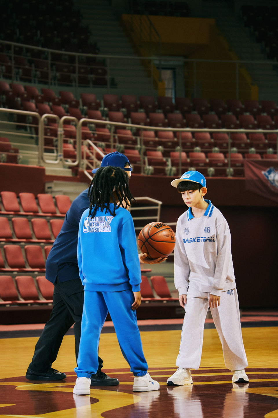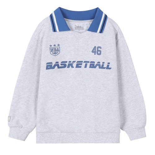 - 앞쪽의 유니폼 스타일의 그래픽과 소매에 nba 로고 와펜이 포인트