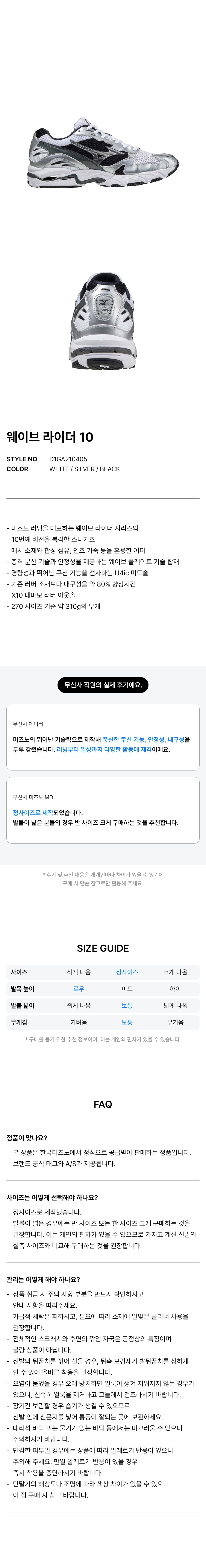 (공용) 웨이브 라이더 10 - 화이트:실버:블랙 / D1GA210405