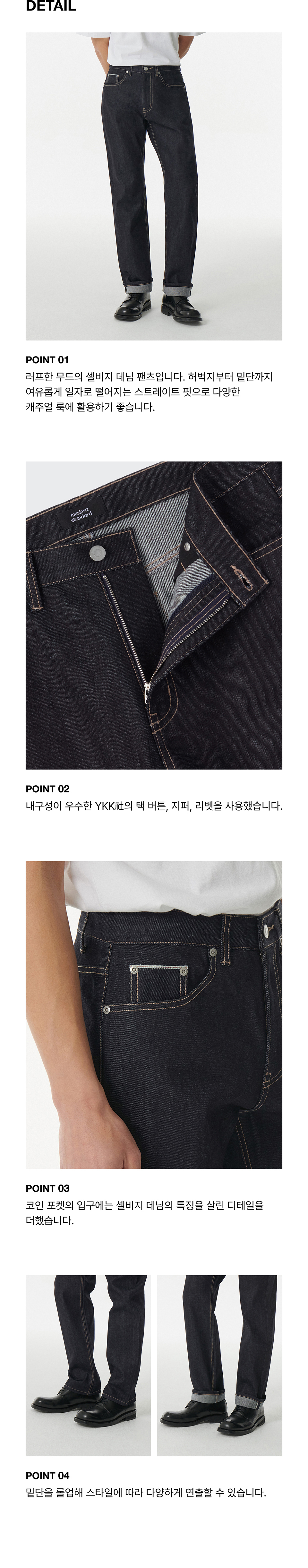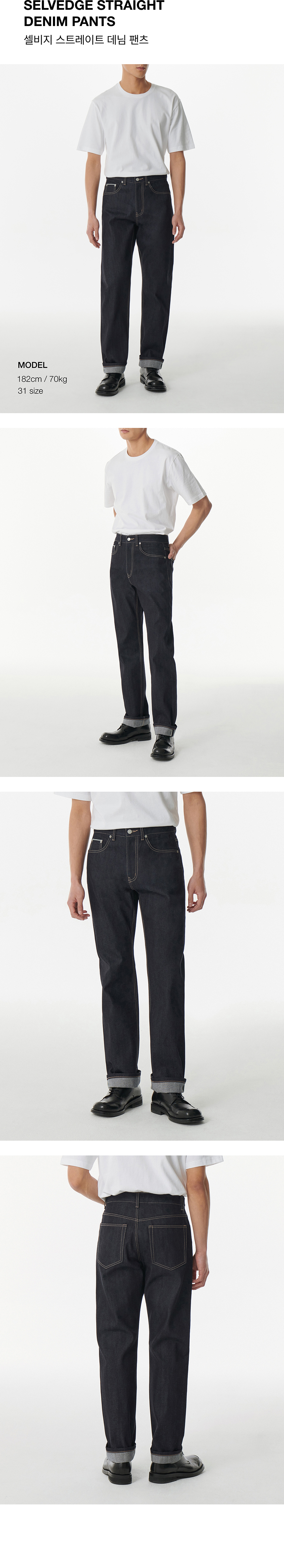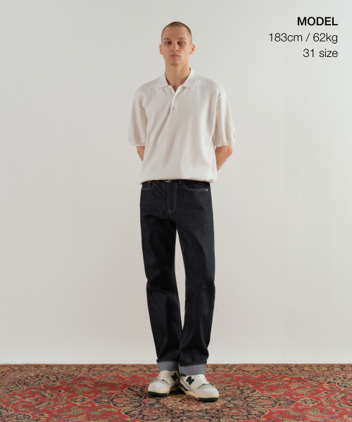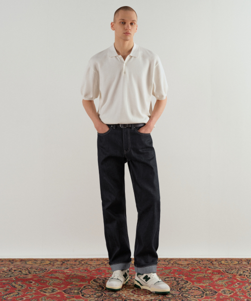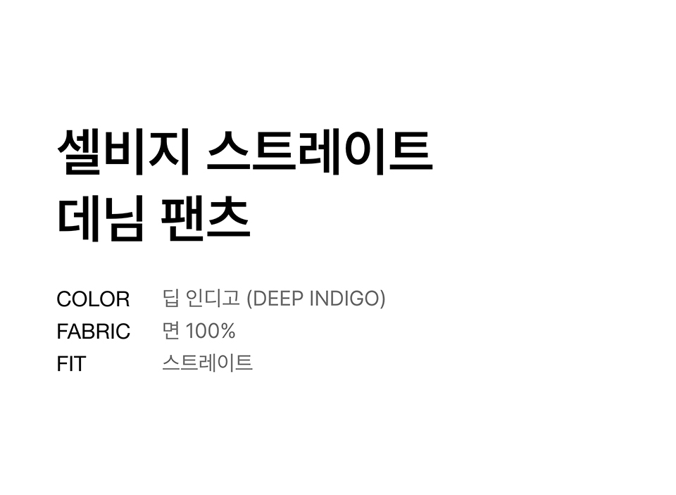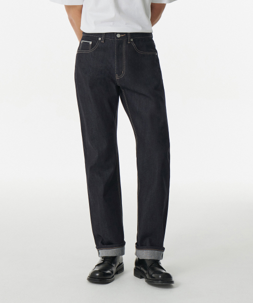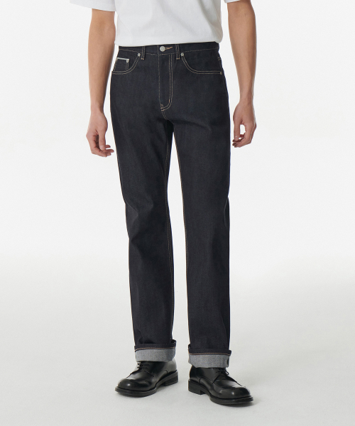 셀비지 스트레이트 데님 팬츠 [딥 인디고]
