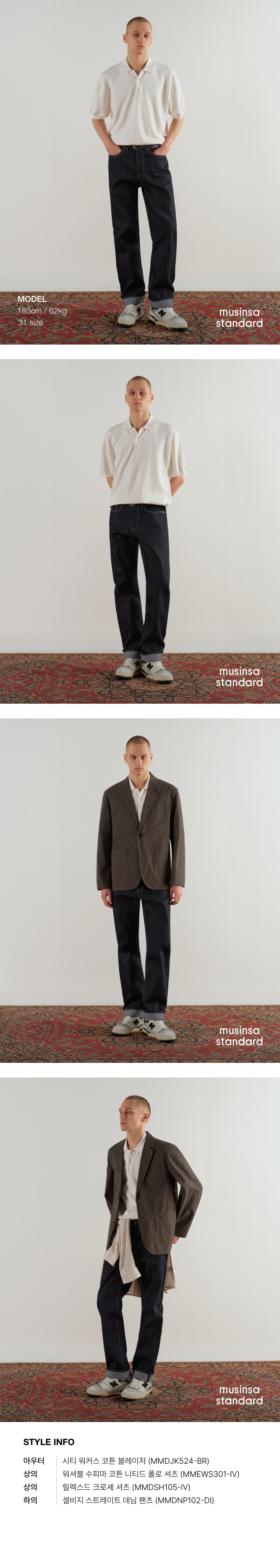 무신사 스탠다드(MUSINSA STANDARD)는 대한민국을 대표하는 온라인 패션 스토어 무신사가 전개하는 자체상표(Private Brand)이며, 모던 베이식 캐주얼웨어를 지향합니다. 단순한 유통구조의 효율적인 운영으로 좋은 품질의 제품을 합리적인 가격에 선보입니다. 가치소비 시대의 새로운 기준을 제시합니다.