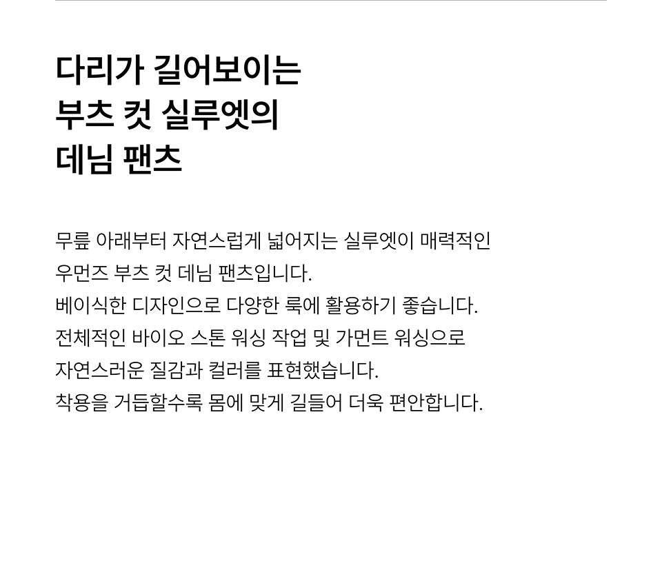 우먼즈 부츠 컷 데님 팬츠 [워시드 블랙]