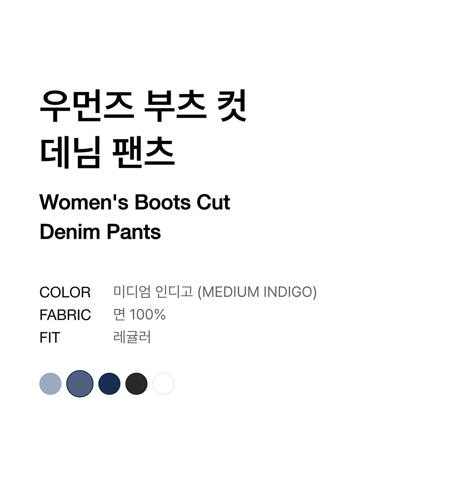 우먼즈 부츠 컷 데님 팬츠 [미디엄 인디고]