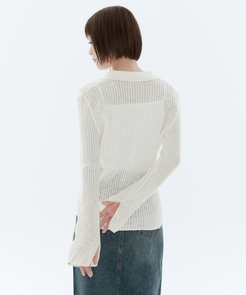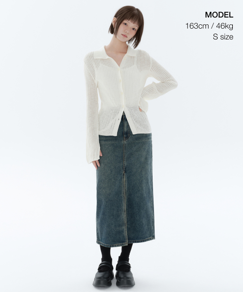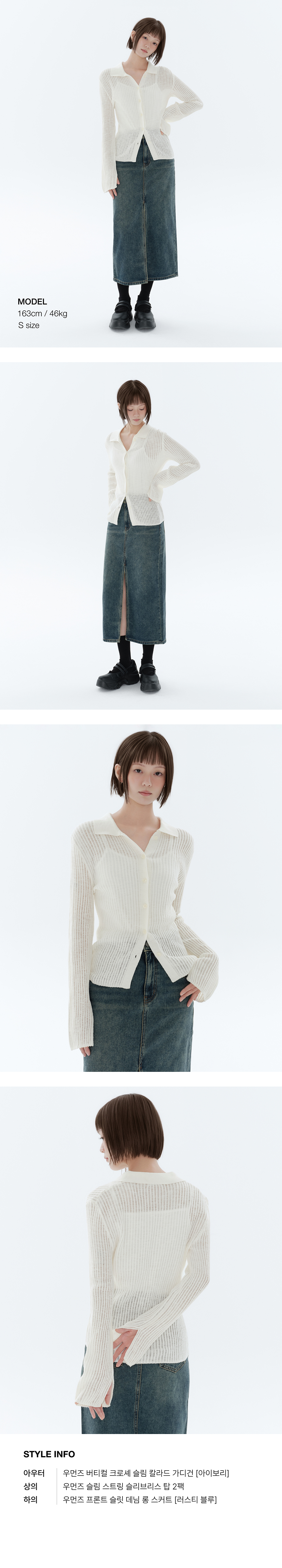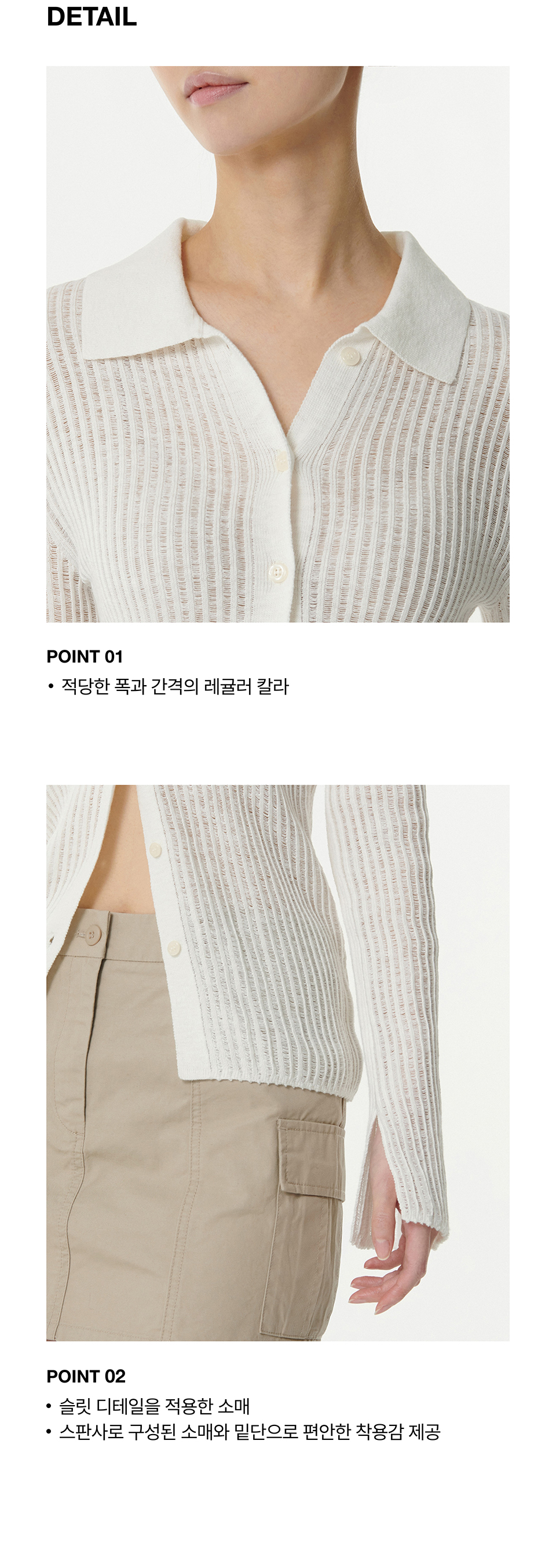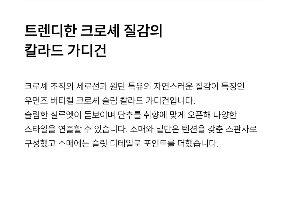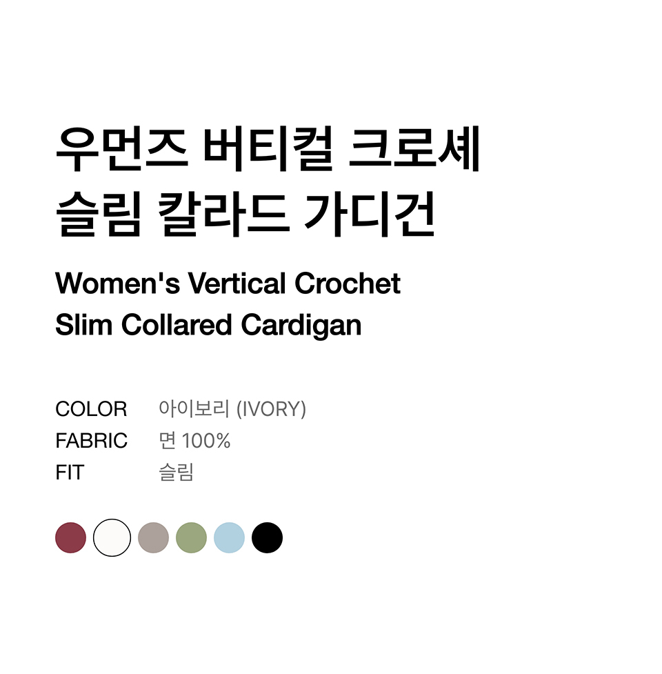 우먼즈 버티컬 크로셰 슬림 칼라드 가디건 [아이보리]