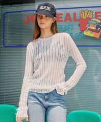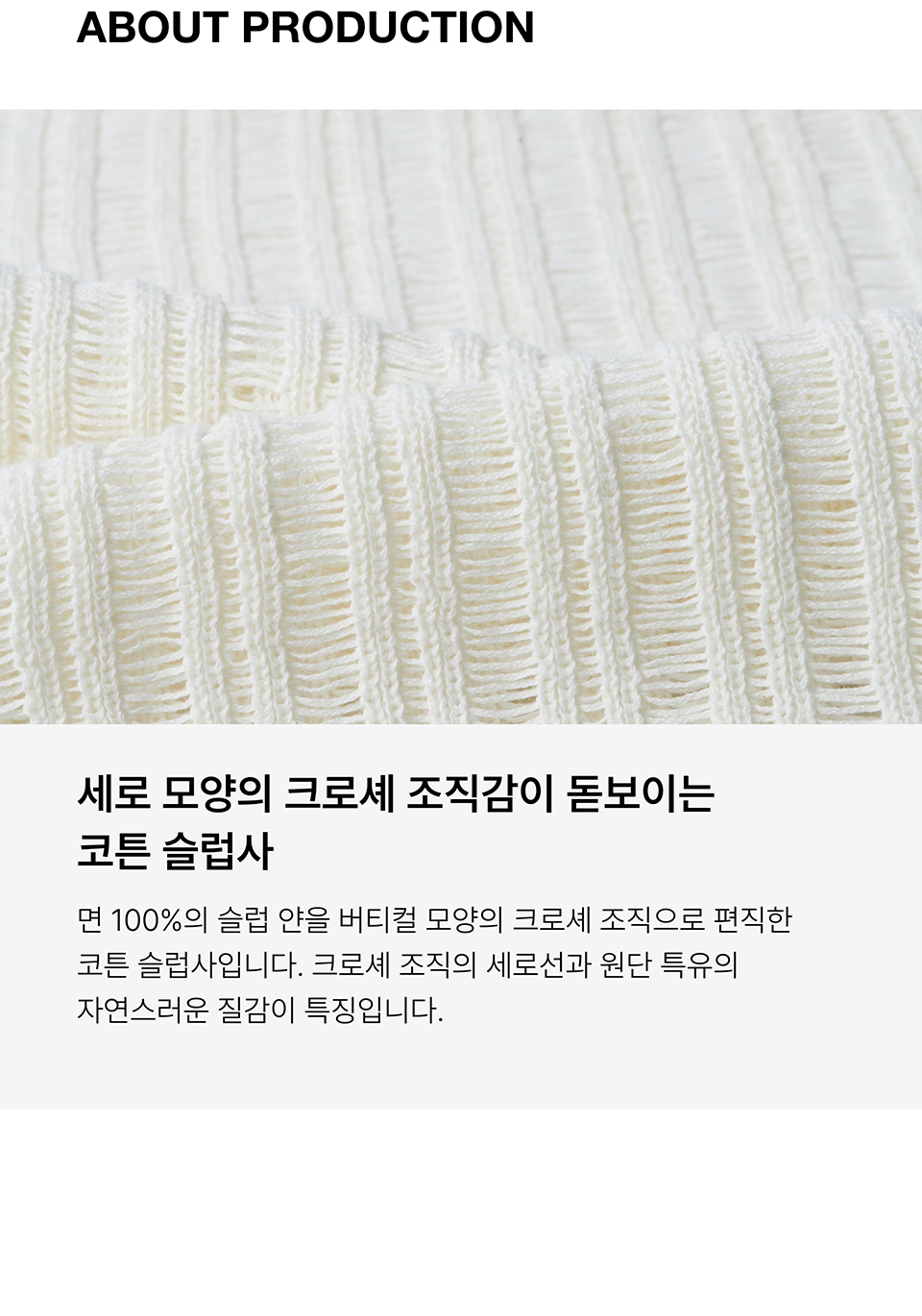 우먼즈 플랫 얀 버티컬 크로셰 크루 넥 니트 [아이보리]