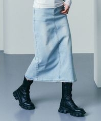 슬릿 워시드 롱 데님 스커트 연청