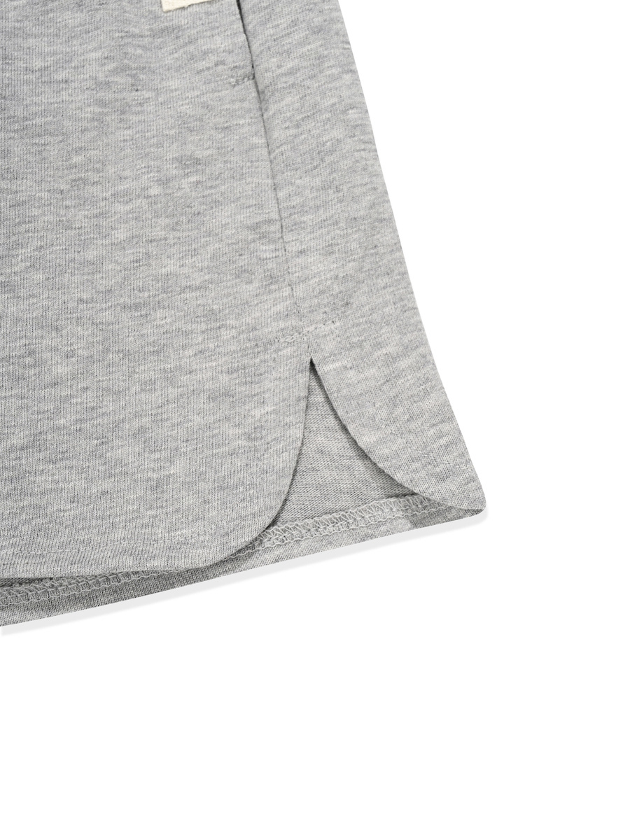 하이 웨이스트의 숏 팬츠. 라운드 옆트임으로 높은 활동성.