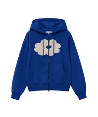 FLORAL CROPPED HOODIE ZIP-UP blue