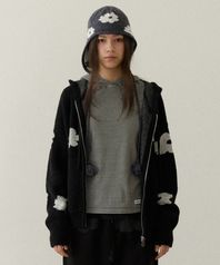 BLOSSOM KNIT HOODIE ZIP-UP black