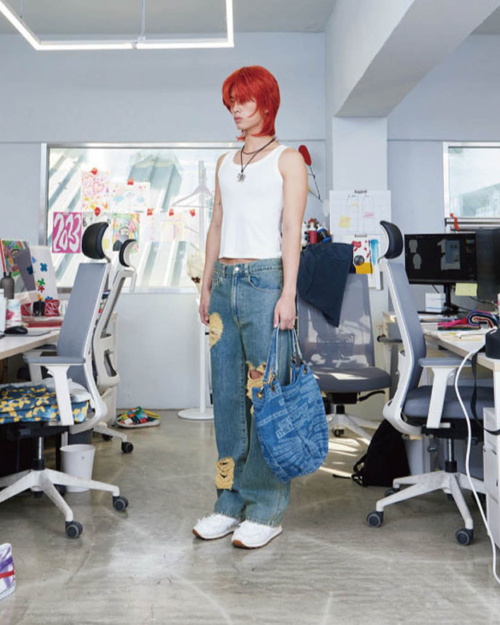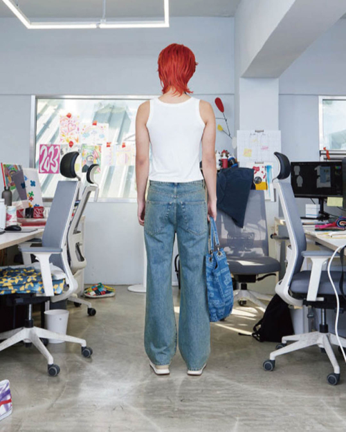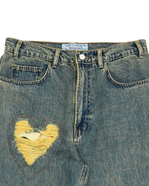 CROSS BELT WASHED DENIM PANTS (BLUE)
