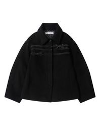 WOOL BLEND RIBBON HALF COAT (BLACK)