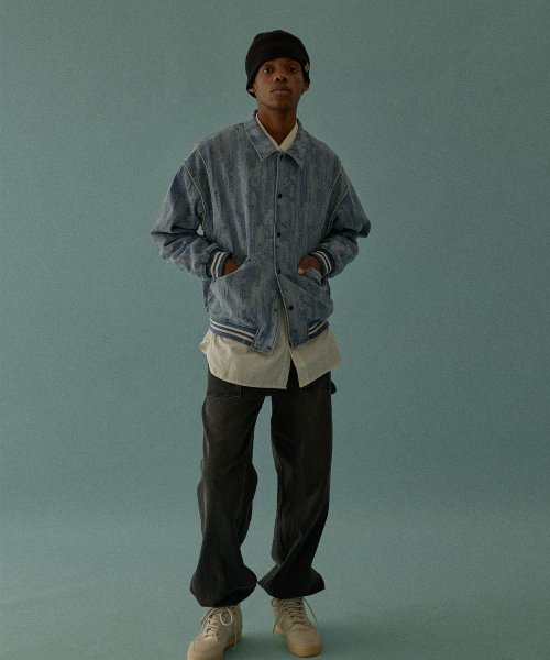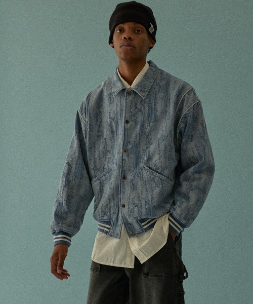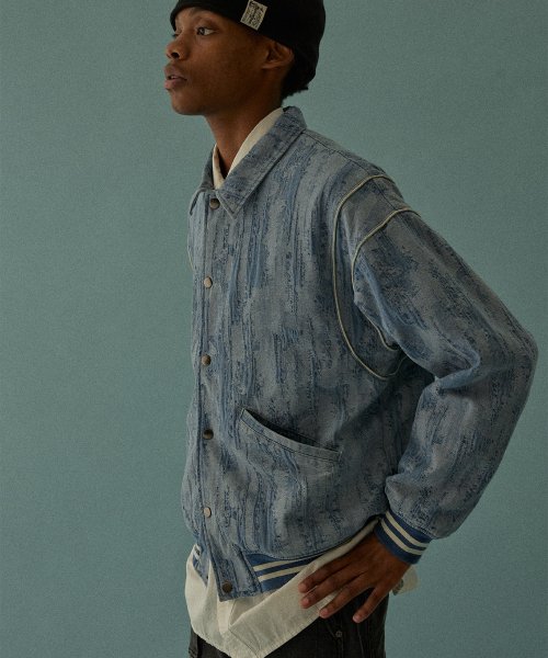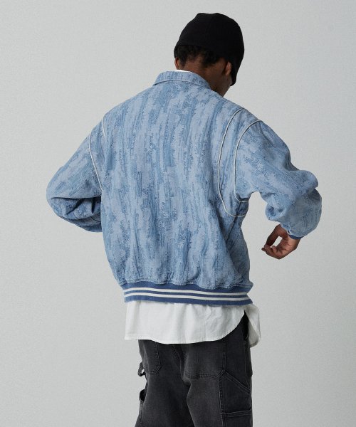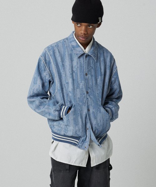 바시티 5702 자카드데님 오버핏 라이트인디고 야구재킷