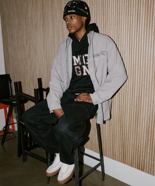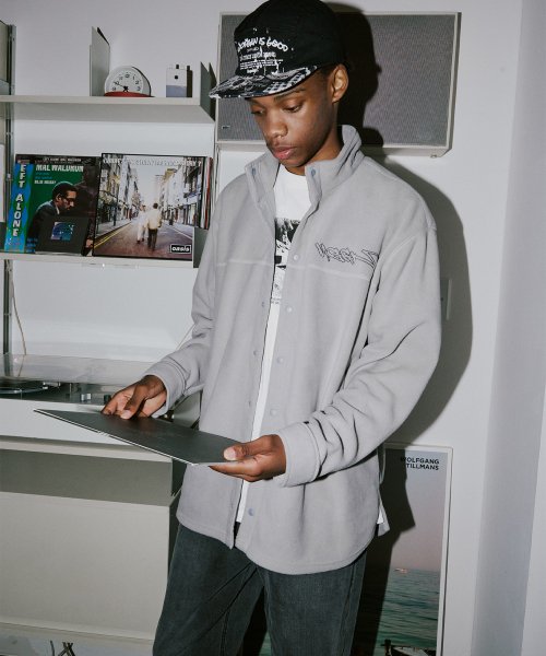 레이버 2110 플리스 오버핏 라이트그레이 셔츠