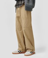 사이드 절개 포켓 피치스킨 코튼 팬츠 [베이지]