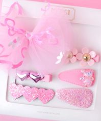 유아동 레이디리본 핑크 헤어핀 선물세트 6P