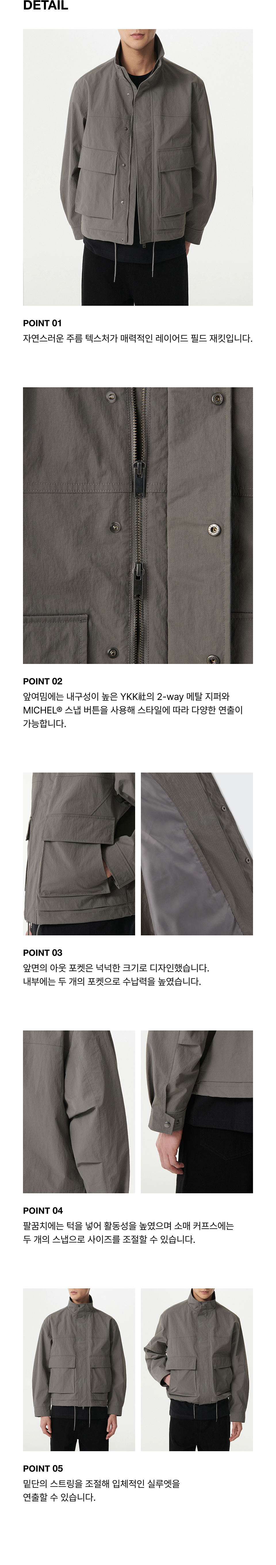 크리즈 레이어 필드 재킷 [카키 그레이]