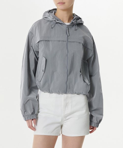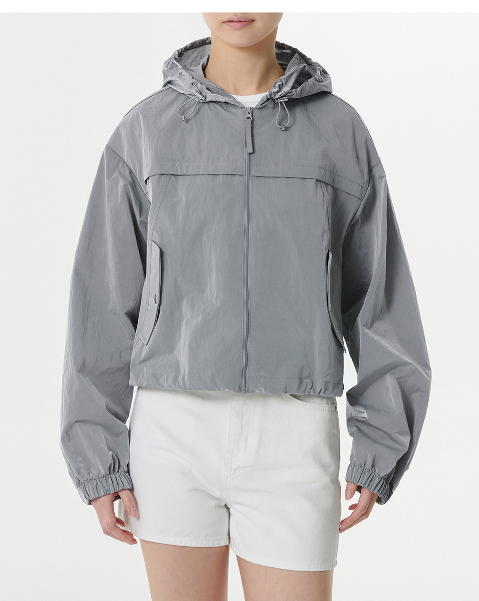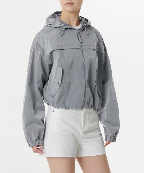 우먼즈 브라이트 후디드 윈드브레이커 재킷 [그레이]