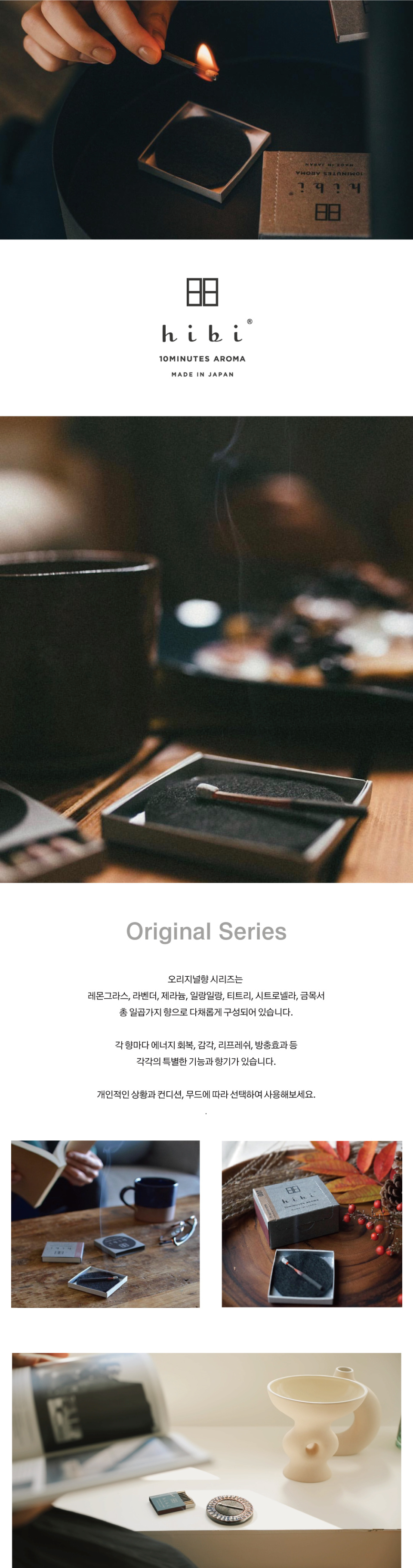 히비(HIBI)는 일본의 최상급 재료로 섬세하게 만든 성냥 인센스입니다. 100년 전통이 어우러진 성냥과 인센스의 아름다운 만남으로 서정적이고 우아한 향기를 선사합니다.
