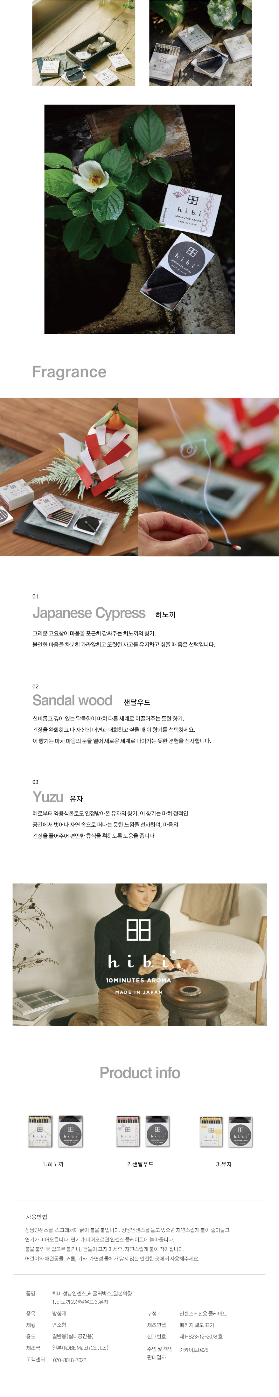 히비(HIBI)는 일본의 최상급 재료로 섬세하게 만든 성냥 인센스입니다. 100년 전통이 어우러진 성냥과 인센스의 아름다운 만남으로 서정적이고 우아한 향기를 선사합니다.